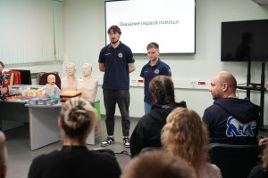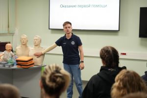 Одно из таких мероприятий – тренинг по оказанию первой помощи, приуроченный к Дню ветеранов боевых действий. Под руководством опытных инструкторов Московского городского отделения «Всероссийского студенческого корпуса спасателей» участники освоили теорию и практику сердечно-легочной реанимации, научились оказывать первую помощь при ранах и кровотечениях, а также отработали основы правильной транспортировки раненого/пострадавшего.