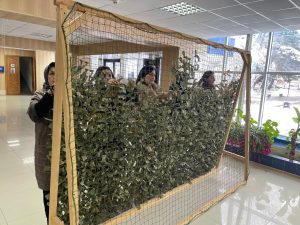 Председатель местного отделения ВОД «Матери России» в Магарамкентском районе Республики Дагестан Ольга Староконь организовала мастерскую по изготовлению маскировочных сетей.
