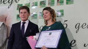 Губернатор Приморского края вручил краевые награды директору Центра Яне Цуркан, а также меценатам, поддерживающим социально ориентированные некоммерческие организации края.